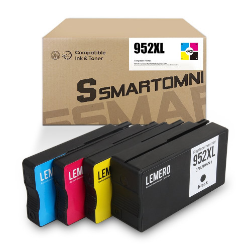 - [PACKAGE CONTENTS] It includes 4-Pack S SMARTOMNI Remanufactured HP 952 black and color combo pack dye ink cartridges (2 F6U19AN Black, 1 L0S61AN Cyan, 1 L0S64AN Magenta, 1 L0S67AN Yellow) and an installation guide.