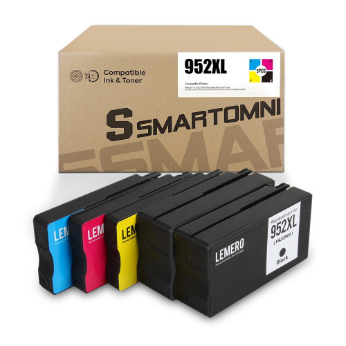 - [PACKAGE CONTENTS] Package includes 5 pack S SMARTOMNI Remanufactured HP 952XL dye ink cartridges combo pack (2 F6U19AN Black, 1 L0S61AN Cyan, 1 L0S64AN Magenta, 1 L0S67AN Yellow) and an installation guide.