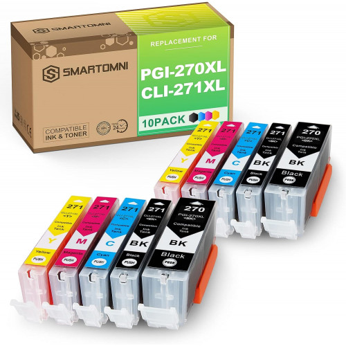 - Package: 10 Packs (2 Black, 2 Photo Black, 2 Yellow, 2 Cyan and 2 Magenta) of PGI-270XL CLI-271XL 270XL 271XL ink cartridges and an installation guide