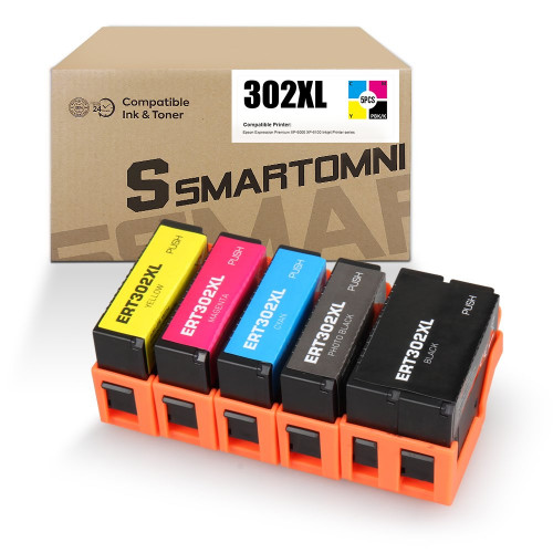 - PACKAGE CONTENTS:Package includes 5 pack S SMARTOMNI Remanufactured Epson 302XL T302XL ink cartridges (1 x T302XL020-S Black, 1 x T302XL120-S Photo Black, 1 x T302XL220-S Cyan, 1 x T302XL320-S Magenta, 1 x T302XL420-S Yellow) and an installation guide.