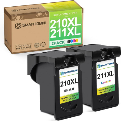 S SMARTOMNI Remanufactured PG-210XL CLI-211XL Ink Cartridge Replacement for Canon 210XL 211XL (2 Pack, Black Tri-Color)